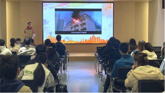 保卫处李腾老师以《大学消防安全》为主题,紧密围绕“加强安全意识的重要性”和“如何更好地预防火灾事故的发生”等内容,向各实验中心负责人及本科生代表们详细讲解了校园火灾的预防措施和必备的消防技能,并指导我院师生使用模拟消防系统进行实际灭火操作。