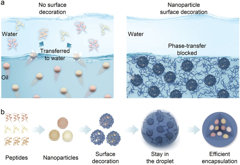 示意图:胶体表面伪装抑制药物跨界面扩散