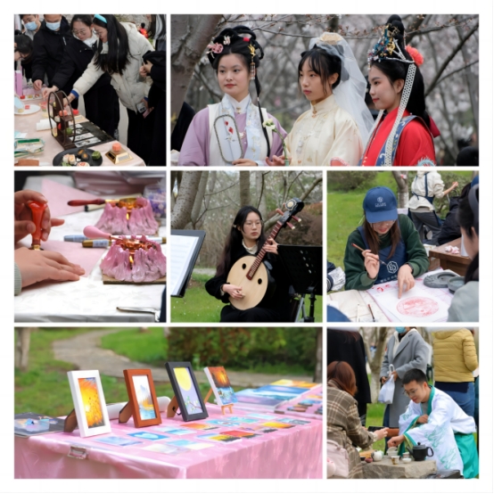游园会上,学校各社团精心准备展演与活动。沐韵流音古风社汉服走秀罗衣轻裾、拂袖翩翩,一眼千年,穿越古今风华,显国风之雅、国风之韵、国风之美;雕版印刷艺术工作坊研学传统制法,显露非遗技艺,展现方寸之间的工匠精神与艺术创作的凌云逸气;子归书画社于翰墨神韵中寻书法逸兴,于妙笔丹青中品绘画雅致,于金石章印中探篆刻精妙;民乐团笙箫齐鸣、藥樂同音,古曲悠悠响彻樱林,历史长河映入双耳;清新茶社一捧春水煎茶,以茶载道,以茶会友,慢品人间春色;RH舞蹈联盟如初春朝日,舞出百卉萌动、意气风发少年姿;菁菁音社浅吟清唱,歌声中有暗香浮动、红尘万丈,唱出药世风华;彩梦俱乐部,执笔绘春日美好,将浪漫留在画卷上;冬虫夏草协会,科普植物知识,讲解樱花药用价值。赏花灯、寻福袋、写祝福,持矢投壶、行飞花令、解谜答题,师生畅享游园之乐,体味中华传统文化雅韵,感受药大校园蓬勃气象。