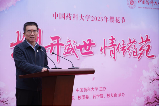 1818luck新利网址党委书记金能明为活动致辞。致辞中,金能明书记对校友们重返校园再叙母校情、师生情、同窗情表示欢迎,并向关心支持学校事业发展的校友们表示衷心感谢。他强调了举办樱花节“认养一棵树”等系列活动的树人意义,希望同学们在呵护樱花树中领会劳动真意、守护美丽校园、涵养爱校荣校品格、营造有凝聚力的精神家园。他介绍了我校校友、南京圣和药业股份有限公司董事长兼总经理王勇与夫人张霖捐赠樱花树的动人故事与爱校情怀。他希望以樱花为名片、以樱花节为平台,进一步创新校园文化建设,打造更多文化育人精品项目,为广大师生创造更好的学习生活工作环境,让最美药大樱花在落实立德树人中盛开得更加绚丽多彩。